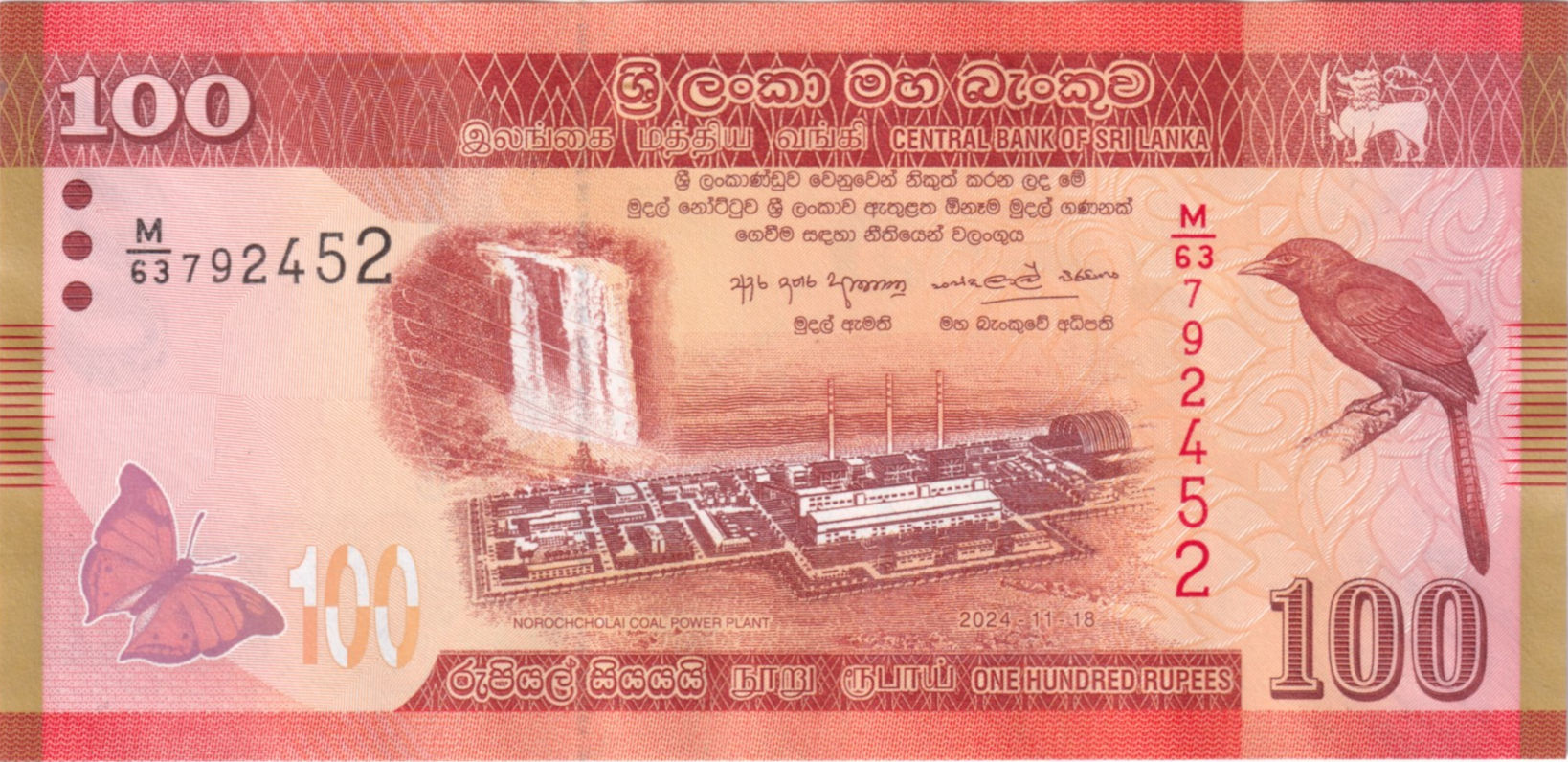 The Rs 100 dated 2024-11-18 reported on 2026-03-12 by K.W.M. Samarasinghe of BoC
